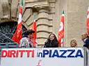 In una Piazza Lazzarini piena di bandiere rosse e palloncini, di fronte a millecinquecento lavoratrici, lavoratori, pensionati e tanti giovani, Walter Schiavella ha chiuso a Pesaro la giornata di mobilitazione nazionale promossa dalla Cgil “Diritti In Piazza”. Dopo le testimonianze di lavoratori, precari, giovani, pensionati, Walter Schiavella ha preso la parola ricordando l’importanza di essere in piazza “per rivendicare il diritti del lavoro e per esercitare, con serenità ma con altrettanta forza e determinazione, il nostro diritto democratico. Il diritto di dire che non siamo d’accordo, il diritto di alzare la voce e dare visibilità al nostro dissenso verso una manovra che penalizza i lavoratori, i pensionati, i giovani, il futuro del nostro paese. Un dissenso che in democrazia deve essere accettato e rispettato. Un dissenso che oggi – ha sottolineato il leader della Fillea – in molti vorrebbero ridurre al silenzio, verso il quale settori importanti dell’economia, della politica e dell’informazione mostrano fastidio.” “Essi non sembrano gradire – ha incalzato Schiavella - che un soggetto sociale libero, autonomo e rappresentativo di milioni di lavoratori e pensionati, con una lunga e importante storia, come la Cgil possa rivendicare la realizzazione di una sua piattaforma per dare un futuro diverso al Paese.” “Noi siamo qui per rivendicare più diritti e più dignità per il lavoro. Più reddito per salari e pensioni, più solidarietà ed equità sociale, più sviluppo e più occupazione. Ma queste rivendicazioni, ed ancor più l’idea che qualcuno osi rivendicare diritti e non chiedere favori, suscitano insofferenza in alcuni falsi assertori del libero mercato, a certa stampa e a certi settori dell’imprenditoria." "A questi signori – ha proseguito Schiavella - piace il silenzio. Quello, ad esempio, con cui i lavoratori Lehman Brothers hanno lasciato gli uffici con gli scatoloni sottobraccio. Ma non staremo zitti! Berlusconi e Sacconi con Alitalia hanno cercato di mettere la Cgil nell’angolo. Non ci sono riusciti - ha sottolineato Schiavella tra gli applausi – e noi oggi vogliamo parlare, alzare la voce, dire la nostra, dare volto e protagonismo al lavoro e rispedire al mittente l’accusa di non essere autonomi!” La Cgil si opporrà a qualsiasi tentativo di destrutturare le norme sul mercato del lavoro e quelle sulla sicurezza, in nome di un “insano principio che considera le regole solo come vincoli e costi. Un esempio su tutti – ha detto – è la vergognosa direttiva del Ministro del Lavoro sull’ attività ispettiva, con cui di fatto si trasformano gli ispettori del lavoro in consulenti. Invece di dar loro mezzi e risorse, invece di rendere più efficace il coordinamento tra l’attività di tutti gli organismi di controllo sulla sicurezza e di contrasto del lavoro nero ed all'illegalità – ha concluso Schiavella - Sacconi si preoccupa solo di privare gli ispettori del lavoro della loro fondamentale funzione di controllo e di rendere inefficaci non solo le denunce anonime ma anche quelle dei singoli lavoratori e dello stesso sindacato.”